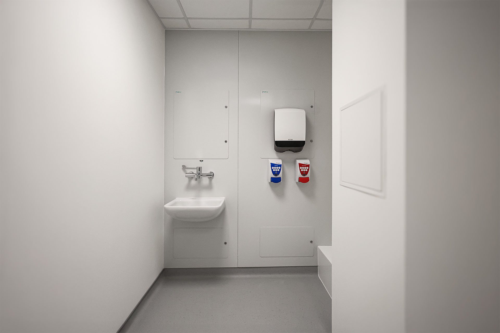 ![]() | Public washrooms within the Urgent Care Centre were completed using Trovex Washrooms SGL cubicle systems, selected specifically for healthcare use due to their moisture resistance, impact durability, and long service life. The cubicle systems are designed to withstand heavy daily use in public healthcare washrooms, while integrated Hygipod IPS behind sanitaryware provides standardised and discreet service access without compromising the overall appearance of the space. The result is a clean, practical washroom environment that supports patient experience, infection control, and long-term maintenance. |